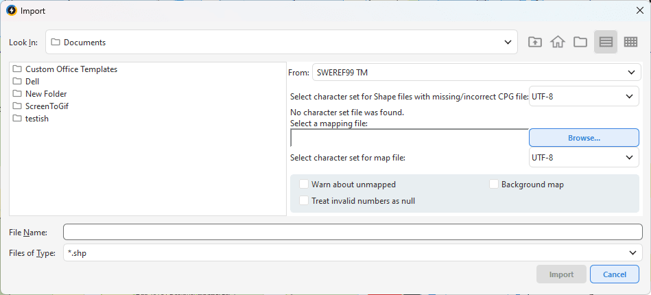 8.Check Treat invalid numbers as null if the Shape file contains invalid number values.