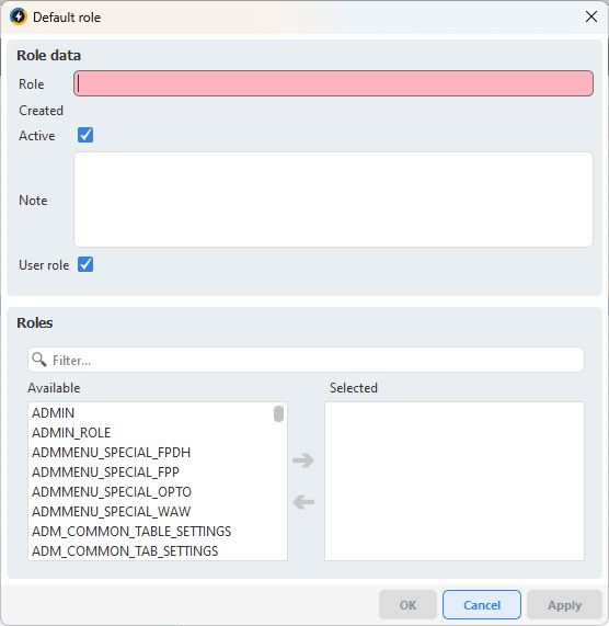 2.Fill in the role information. Fields marked in pink are mandatory.