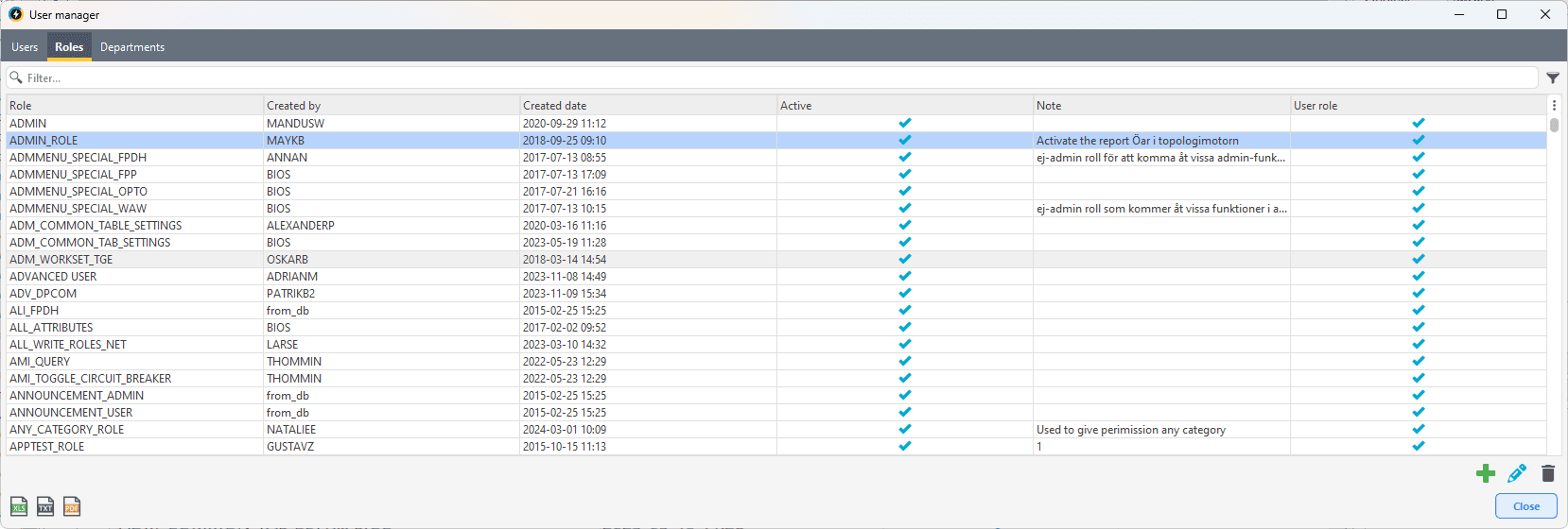The report Roles changed shows which user roles have been changed, what types of changes that have been made, when they were made and by whom. The report also shows whether the user role is active or inactive.