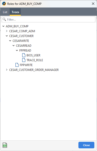 You can choose to display the information as List or Tree. Tree view also shows which roles the roles contain.