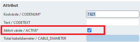 Fältet krävs för att kunna aktivera/inaktivera valda kodlistvärden.