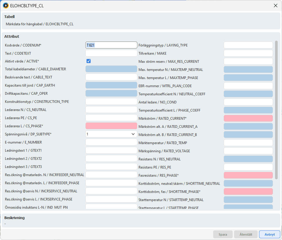 2.Redigera fälten. Alla fält i en kodlista är redigerbara, med undantag av nyckelfältet samt i förekommande fall dp_subtype-fältet. Obligatoriska fält i kodlistan markeras med en asterisk (*).